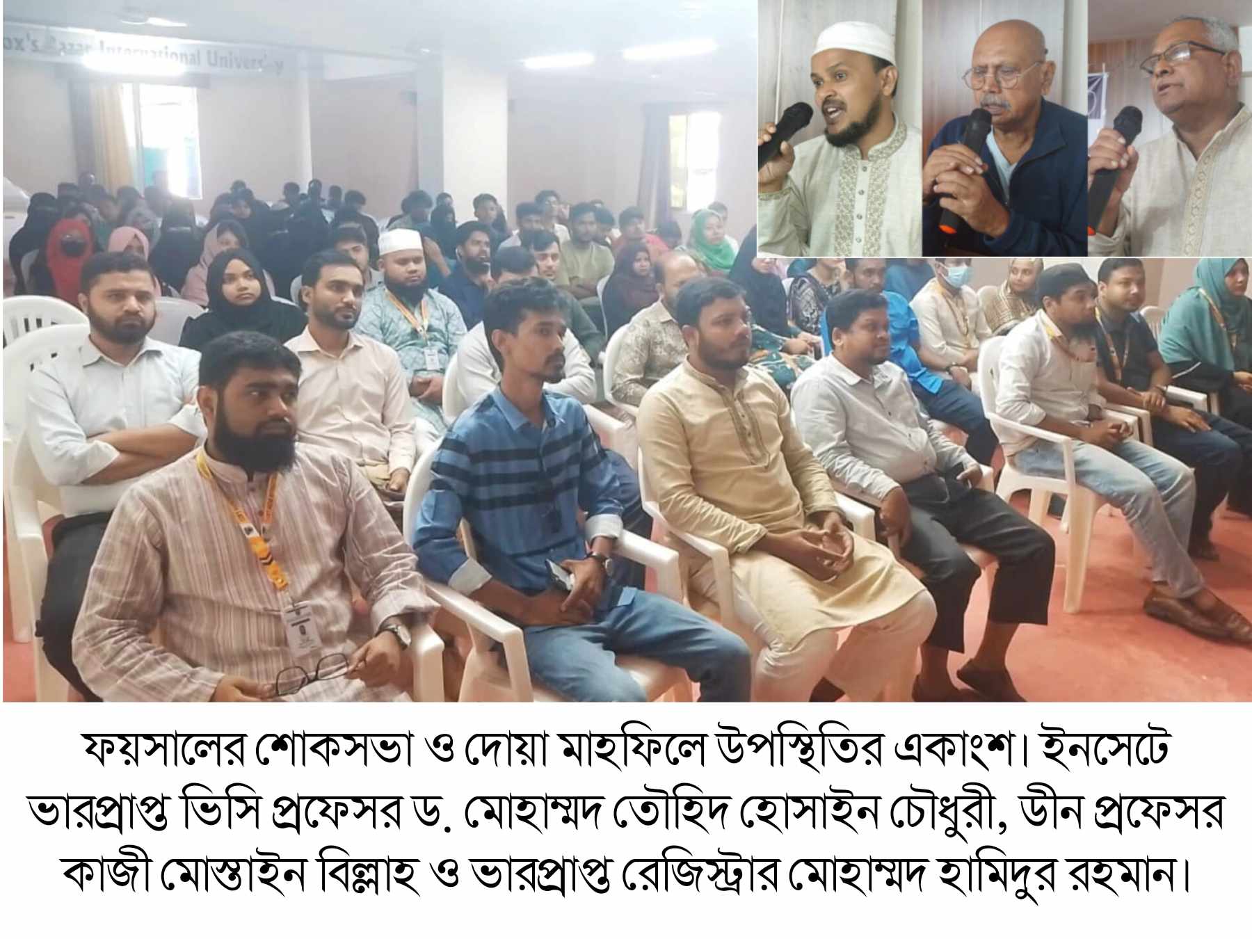 গত ১২ নভেম্বর মর্মান্তিক সড়ক দুর্ঘটনায় নিহত কক্সবাজার ইন্টারন্যাশনাল ইউনিভার্সিটির ইএমবিএ ১৯ তম ব্যাচের কৃতি ছাত্র মো. ফয়সাল আহমদ এর শোকসভা ও দোয়া মাহফিল অনুষ্ঠিত হয়েছে।