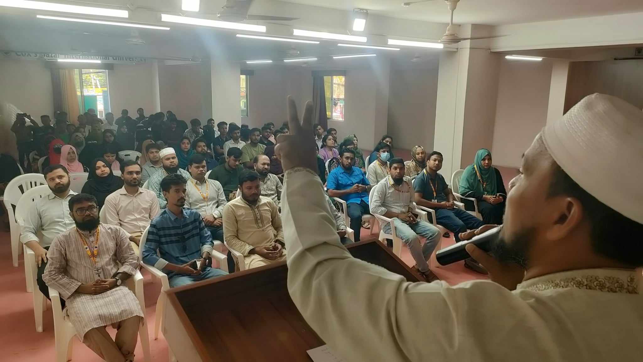 বিশ্ববিদ্যালয়ের শিক্ষকদের পক্ষে ইসলামিক স্টাডিজ বিভাগ এর চেয়ারম্যান ড. মো. আতাউল্লাহ খালেদ, ব্যবসায় প্রশাসন বিভাগের সহকারী অধ্যাপক রাজিদুল হক বক্তব্য রাখেন।