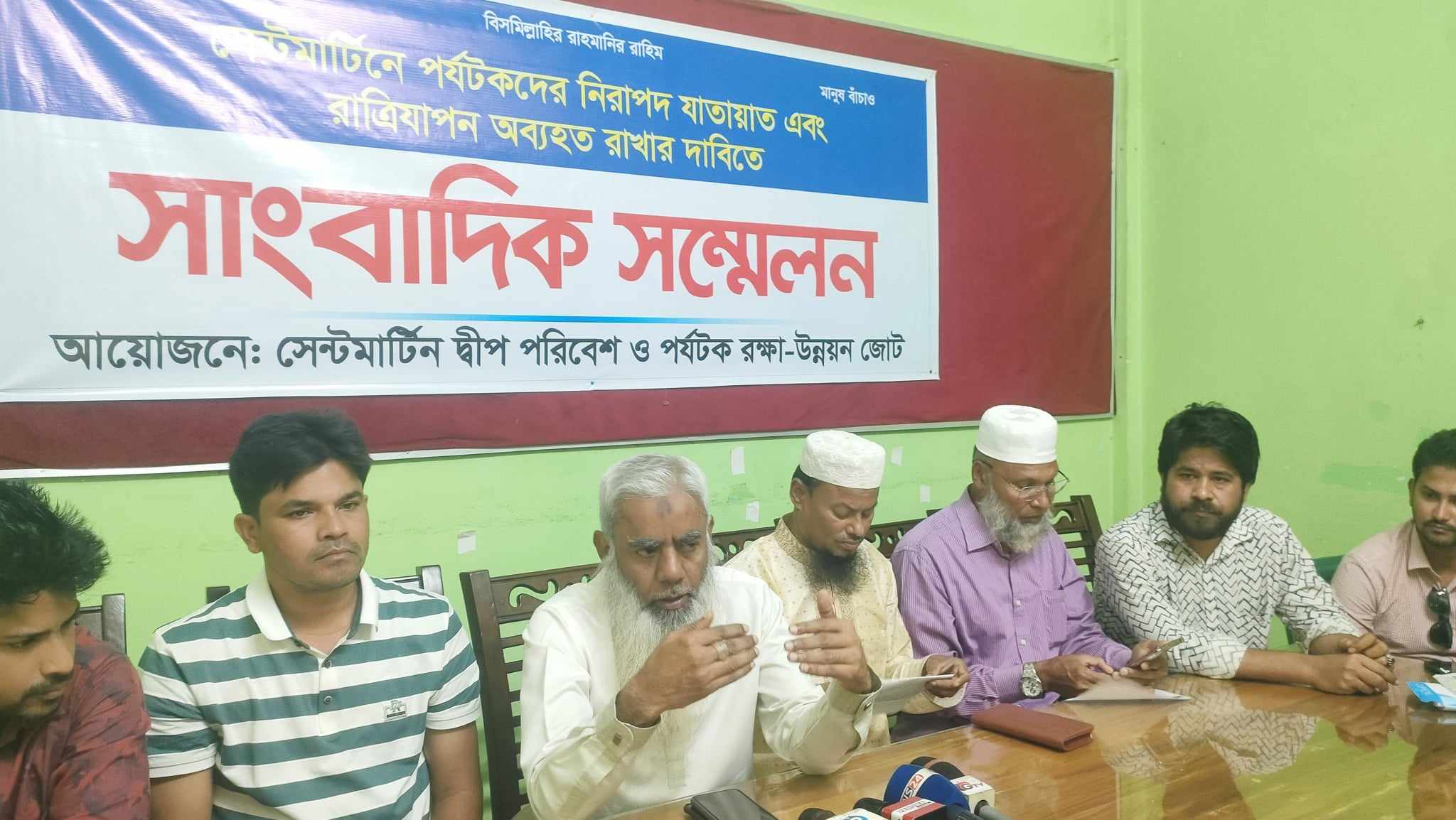 জোটের চেয়ারম্যান শিবলুল আজম কোরেশি বলেন, ছাত্র-ছাত্রী, স্থানীয় জনগণ, দিনমজুর, কুলি, শ্রমিক, মৎসজীবী, চাকুরীজীবী, তরুণ উদ্যোক্তা, পর্যটন ব্যবসায়ী, ট্রান্সপোর্ট ব্যবসায়ী, হোটেল-রিসোর্ট মালিকসহ সকল শ্রেণি পেশার মানুষের প্রবল আপত্তি অগ্রাহ্য করে সরকার সেন্টমার্টিন দ্বীপ ভ্রমনে নিষেধাজ্ঞা এবং রাত্রি যাপন ও পর্যটক যাতায়াত সীমিত করার আত্মঘাতি সিদ্ধান্ত নিয়েছে। যার ফলে ইতোমধ্যে হাজার হাজার মানুষ বেকার হয়ে পড়েছে। স্থানীয় বাসিন্দারা জীবন ও জীবিকা নিয়ে উদ্বিগ্ন হয়ে পড়েছে। ফলে আর্থিক বিপর্যয় দেখা দিয়েছে। ছাত্র-ছাত্রীরা তাদের পড়ালেখা ও ভবিষ্যত নিয়ে শংকিত। পর্যটন উদ্যোক্তারা পথে বসার উপক্রম হয়েছে। হোটেল-রিসোর্ট মালিকদের বিনিয়োগ হুমকির মুখে পড়েছে। সরকারের এ গণবিরোধী সিদ্ধান্তের প্রতিবাদে আমরা ইতোমধ্যে নানা কর্মসূচি পালন করেছি। কিন্তু সরকার তার সিদ্ধান্তের পক্ষে অটল। এমতাবস্থায় জনজীবনের ব্যাপক ক্ষতি ও মানবিক সংকট আসন্ন।