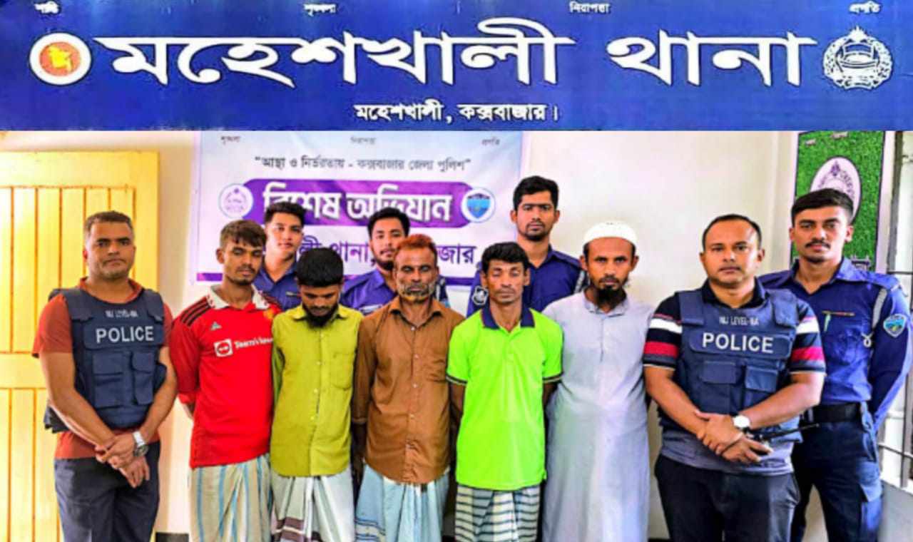 মহেশখালী থানা এলাকার আইন-শৃঙ্খলা পরিস্থিতি স্বাভাবিক রাখতে অফিসার ইনচার্জ (ওসি) মোহাম্মদ কাইছার হামিদের নেতৃত্বে এসআই মহসীন চৌধুরী ও সঙ্গীয় ফোর্স অভিযান পরিচালনা করেন। অভিযানে গ্রেপ্তারকৃত আসামিরা হলেন: মুহাম্মদ সাহাবুদ্দিন (সিআর-৩৩৩/২৩), পিতা: আবু জাফর, মো. বাকী বিল্লা হেলালী (সিআর-৫৭৫/১৭), ৬ মাসের সাজাপ্রাপ্ত, পিতা: সামসুদ্দোহা, মো. আবদুর রাজ্জাক (জিআর-৬৮০/১০), ৬ মাসের সাজাপ্রাপ্ত, পিতা: মৃত হাজী জাফর আহমেদ, মো. ইসমাইল (জিআর-১০২/১৯), ১ বছরের সাজাপ্রাপ্ত, পিতা: মো. কামাল মো. মাহবুব (বন-২৯/১৭), ৬ মাসের সাজাপ্রাপ্ত, পিতা: মৃত এজলাস মিয়া, আলা উদ্দিন (জিআর-৫২/২৩), পিতা: জহির আলম, আজিজ উল্লাহ (জিআর-২৯৬/২২), পিতা: মৃত আলী আহমদ ভুতু।