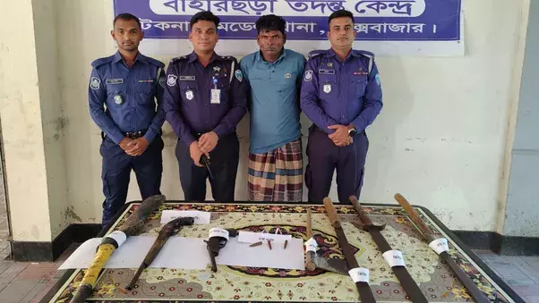 পুলিশ জানিয়েছে, বদরুদ্দোজার কাছ থেকে একটি বন্দুক, দু’টি ওয়ান শুটার গান, তিনটি তাজা কার্তুজ, দু’টি কিরিচ, একটি রামদা এবং একটি চাইনিজ কুড়াল উদ্ধার করা হয়েছে।
