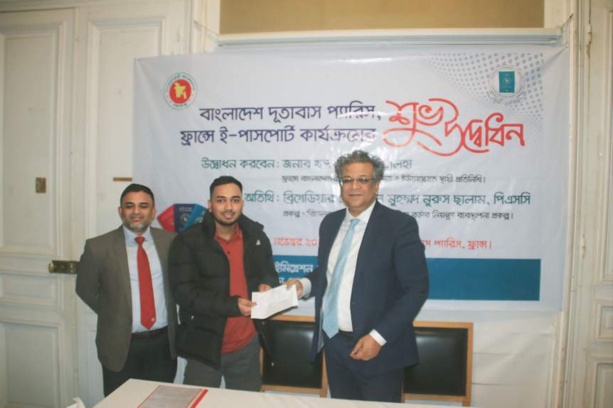 ফ্রান্সসহ ৪৬টি মিশনে ই-পাসপোর্ট চালুর মাধ্যমে প্রবাসী বাংলাদেশিদের সেবা নিশ্চিত করতে বাংলাদেশ মিশন প্রতিশ্রুতিবদ্ধ।