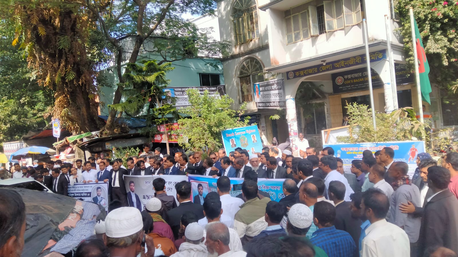 চট্টগ্রামে ইসকনের নৃশংস হামলায় আইনজীবী সাইফুল ইসলাম নিহতের প্রতিবাদে মানববন্ধন ও বিক্ষোভ করেছে কক্সবাজারের আইনজীবীরা।