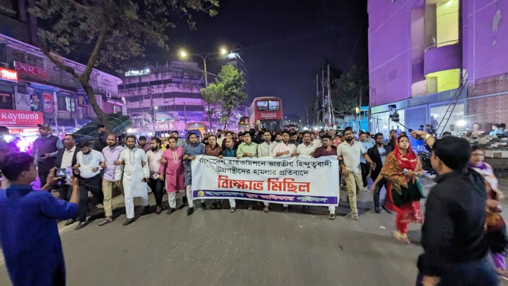 ভারতের আগরতলায় বাংলাদেশ সহকারী হাইকমিশনে হামলার প্রতিবাদে বিক্ষোভ মিছিল করেছে বাংলাদেশ যুব অধিকার পরিষদ।