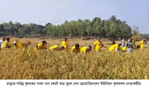 রামুর জোয়ারিয়ানালা ইউনিয়নের হতদরিদ্র কৃষক সুলতান আহমদের ৮০ শতক জমির পাকা ধান কেটে ঘরে পৌঁছে দিয়েছেন জাতীয়তাবাদী কৃষকদলের নেতাকর্মীরা। শনিবার (৮ ডিসেম্বর) সকাল থেকে বিকেল পর্যন্ত উৎসবমুখর পরিবেশে স্বতঃস্ফূর্তভাবে এ কার্যক্রম পরিচালিত হয়। ধান কাটার পর তা কাঁধে নিয়ে কৃষকের বাড়ির আঙিনায় পৌঁছে দেন তারা।