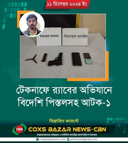 কক্সবাজার র্যাব-১৫-এর অতিরিক্ত পুলিশ সুপার ও সিনিয়র সহকারী পরিচালক (ল’ অ্যান্ড মিডিয়া) মো. কামরুজ্জামান, পিপিএম (সেবা), গণমাধ্যমকে এ তথ্য নিশ্চিত করেছেন।