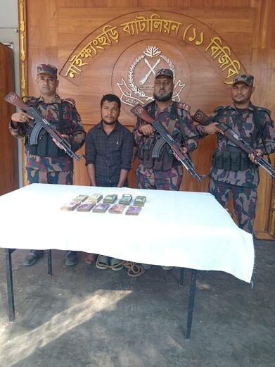 শনিবার (১৪ ডিসেম্বর) সকাল ১০টায় ১১ বিজিবির একটি বিশেষ টহল দল ফুলতলী বিওপির টহল কমান্ডার ডা. মো. রবিউল ইসলামের নেতৃত্বে সীমান্ত পিলার ৪৮-এর ২ নম্বর পয়েন্টের কাছ থেকে তাকে আটক করে। আটক মিজান, নাইক্ষ্যংছড়ি সদর ইউনিয়নের ৯নং ওয়ার্ডের মৃত আবু বক্কর সিদ্দিকের ছেলে।