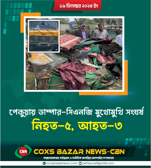 পেকুয়ায় ডাম্পার-সিএনজি (অটোরিক্সা) মুখোমুখি সংঘর্ষে ৫ জন ঘটনাস্থলে নিহত হয়েছে। আহত হয়েছে ৩ জন। ১৯ ডিসেম্বর (বৃহস্পতিবার) সকাল ৭ টার দিকে উপজেলার টইটং ইউনিয়নের এবিসি সড়কে হাজী বাজার এলাকায় এ ঘটনা ঘটে। সর্বশেষ তথ্য মতে লাশগুলো প্রশাসনের পক্ষ থেকে স্বজনদের কাছে হস্তান্তর করা হয়েছে।