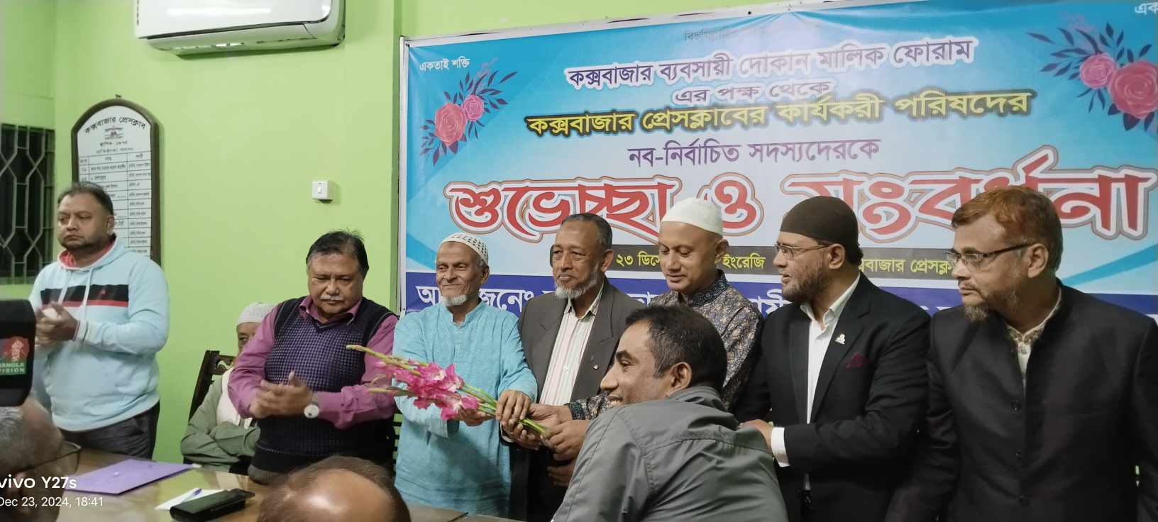 কক্সবাজার ব্যবসায়ী দোকান মালিক ফোরামের সভাপতি আবু জাফর ছিদ্দিকীর সভাপতিত্বে ও সহ সাধারণ সম্পাদক আমিনুল হকের সঞ্চালনায় সংবর্ধনা অনুষ্ঠানে স্বাগত বক্তব্য রাখেন, সহ সভাপতি মোস্তাফা, সদস্য যথাক্রমে আবুল শমা আজাদ, মৌলভী ফারহান উল্লাহ, মো. করিম উল্লাহ, আব্দু সাত্তার, শফিকুল ইসলাম ও ঈমাম হোসেন। সংবর্ধনা অনুষ্ঠানে বক্তারা বলেন, কক্সবাজার জেলার সকল সাংবাদিকরা ঐক্যবদ্ধ হয়ে জেলার উন্নয়ন, সমস্যা, সম্ভাবনা জন্য একসাথে কাজ করবেন। এ সময় কক্সবাজার প্রেসক্লাবের সাধারণ সদস্যরাসহ কক্সবাজার ব্যবসায়ী দোকান মালিক ফোরামের নেতৃবৃন্দরা উপস্থিত ছিলেন।