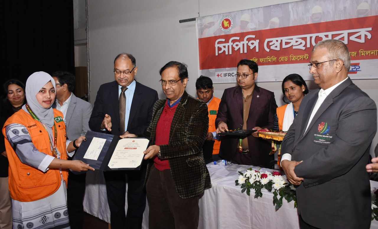 আন্তর্জাতিক দুর্যোগ প্রশমন দিবস-২০২৪ উপলক্ষে ২৪ ডিসেম্বর দিনব্যাপী অনুষ্ঠানের মাধ্যমে ঢাকাস্থ হলি ফ্যামিলি রেড ক্রিসেন্ট মেডিকেল কলেজ অডিটোরিয়াম হলে নির্বাচিত শ্রেষ্ঠ স্বেচ্ছাসেবকদের পুরস্কার প্রদান করা হয়।
