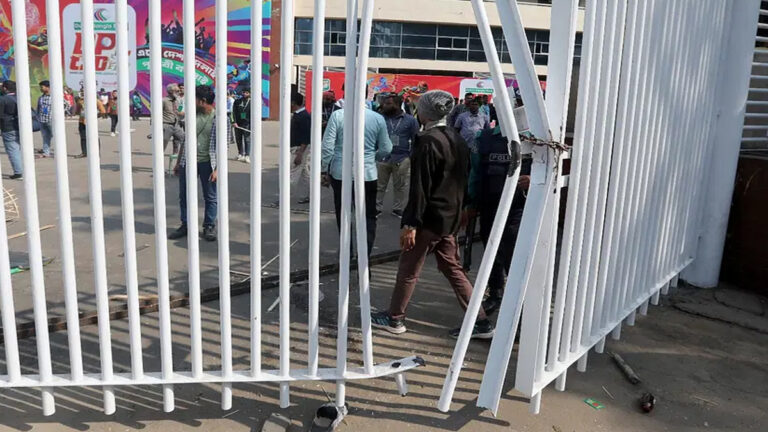 ক্ষুব্ধ দর্শকরা বিসিবির মূল ফটক ভেঙে ফেলেন এবং গেটের সামনে থাকা ব্যানার-প্ল্যাকার্ড ভাঙচুর করেন। সেই ভাঙা কাঠ নিয়ে গেটে আক্রমণ করেন তারা।