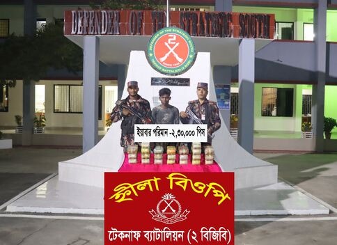 এ সময় একজনকে আটক করা সম্ভব হয়, তবে অপর ব্যক্তি পার্শ্ববর্তী গ্রামে পালিয়ে যায়। আটক ব্যক্তির কাছ থেকে পাওয়া দুটি প্লাস্টিকের বস্তা তল্লাশি করে মোট ২ লাখ ৩০ হাজার পিস ইয়াবা উদ্ধার করা হয়।