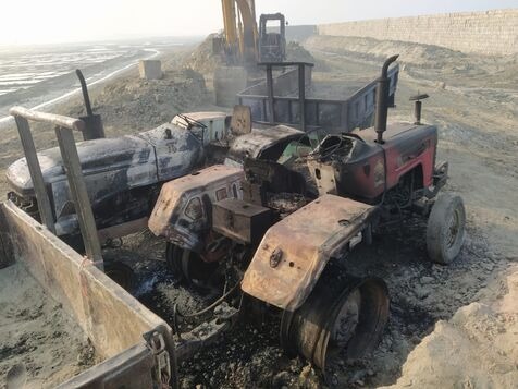 প্রকল্পের ঠিকাদারি প্রতিষ্ঠান মেসার্স তাজ এন্টারপ্রাইজের কর্মকর্তারা জানান, বুধবার রাতে প্রকল্প এলাকায় থাকা পাঁচজন কর্মীকে রশি দিয়ে বেঁধে দুর্বৃত্তরা লুটপাট চালায়। এরপর দুটি স্কেভেটর, পাঁচটি ট্রাকসহ ভারি যানবাহনে আগুন ধরিয়ে দেওয়া হয়। পাশাপাশি ২১ হাজার জিও ব্যাগ, জেনারেটর, লোহাসহ প্রয়োজনীয় নির্মাণ সামগ্রী লুট করে নিয়ে যাওয়া হয়।