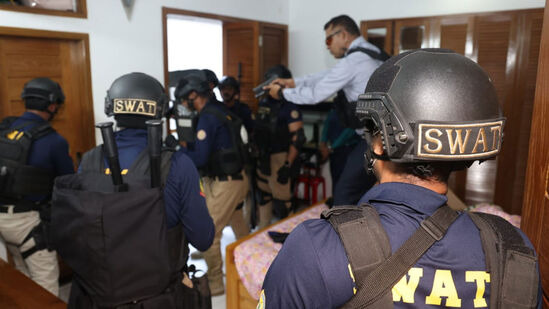 এক ডাকাত লোকমান হাকিমকে গলায় ছুরি ঠেকিয়ে বাথরুমে আটকে রাখে এবং পুলিশকে হুমকি দেয়, গ্রেপ্তার চেষ্টা করা হলে ভুক্তভোগীকে হত্যা করা হবে।