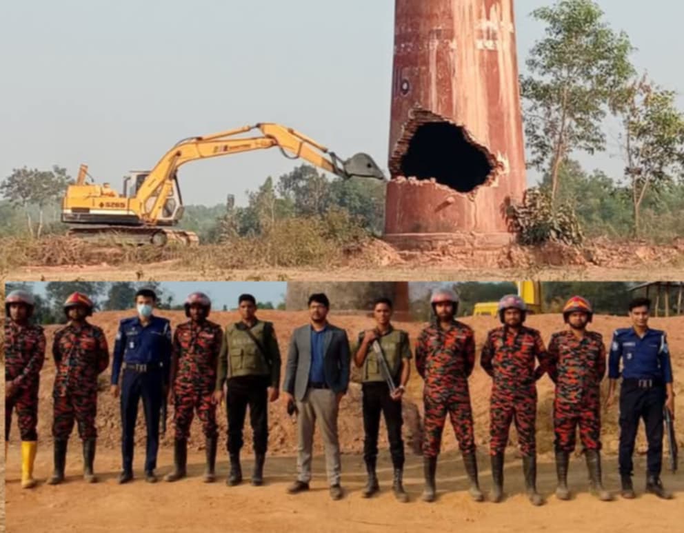 অবৈধভাবে কাঠের জ্বালানি ব্যবহার, পরিবেশের ছাড়পত্র ও জেলা প্রশাসনের লাইসেন্স হালনাগাদ না থাকা এবং প্রশাসনের নির্দেশনা অমান্য করে ইট পোড়ানোর দায়ে থ্রীএসবি ও এলবিএম ব্রিক ফিল্ডের চিমনি গুঁড়িয়ে দেওয়া হয়।