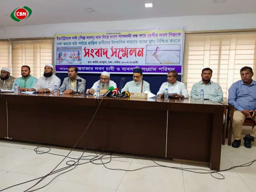 ইন্ডাস্ট্রিয়াল সল্ট (শিল্প লবণ) এর নামে লবণ আমদানি বন্ধ করে দেশীয় লবণ শিল্পকে রক্ষার নিমিত্তে মাঠ পর্যায়ের প্রান্তিক চাষীদের উৎপাদিত লবণের ন্যায্য মূল্য নিশ্চিত করতে মাননীয় প্রধান উপদেষ্টা ও সংশ্লিষ্ট উপদেষ্টাদের হস্তক্ষেপ কামনা করে “কক্সবাজার লবণ চাষী ও ব্যবসায়ী সংগ্রাম পরিষদ” জাতীয় প্রেস ক্লাব, ঢাকাতে এক সংবাদ সম্মেলনের আয়োজন করে।