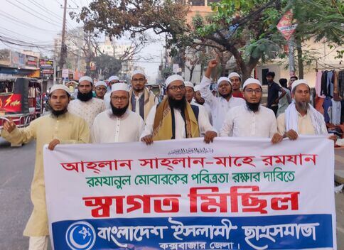 মাহে রমজানের পবিত্রতা রক্ষার দাবিতে কক্সবাজার শহরে স্বাগত মিছিল করেছে বাংলাদেশ ইসলামী ছাত্রসমাজ, কক্সবাজার জেলা শাখা। শুক্রবার (২৮ শাবান ও ফেব্রুয়ারি) আসরের নামাজের পর লালদিঘীর পাড় থেকে শুরু হয়ে মিছিলটি শহরের প্রধান সড়ক প্রদক্ষিণ করে পৌরসভা গেটের সামনে সংক্ষিপ্ত সমাবেশের মাধ্যমে শেষ হয়। মিছিলে অংশগ্রহণকারীরা মাহে রমজানের পবিত্রতা রক্ষার আহ্বান জানিয়ে ঈমানদীপ্ত স্লোগানে রাজপথ মুখরিত করে তোলেন।