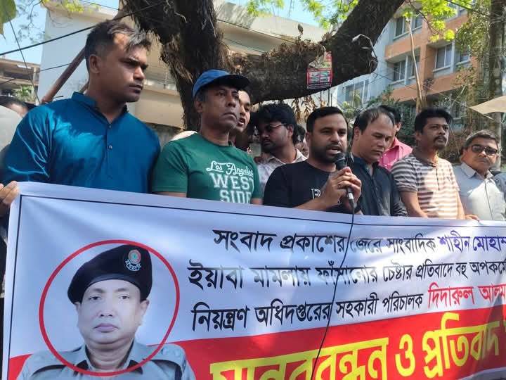 সোমবার দুপুরে জেলা প্রশাসকের কার্যালয়ের সামনে এ মানববন্ধনের আয়োজন করা হয়। মানববন্ধনে বক্তারা অভিযোগ করেন, সহকারী পরিচালক দিদারুল আলম ব্যক্তিগত ক্ষোভ থেকে সাংবাদিক শাহীন মুহাম্মদ রাসেলকে মাদক মামলায় জড়ানোর চেষ্টা করেছেন।