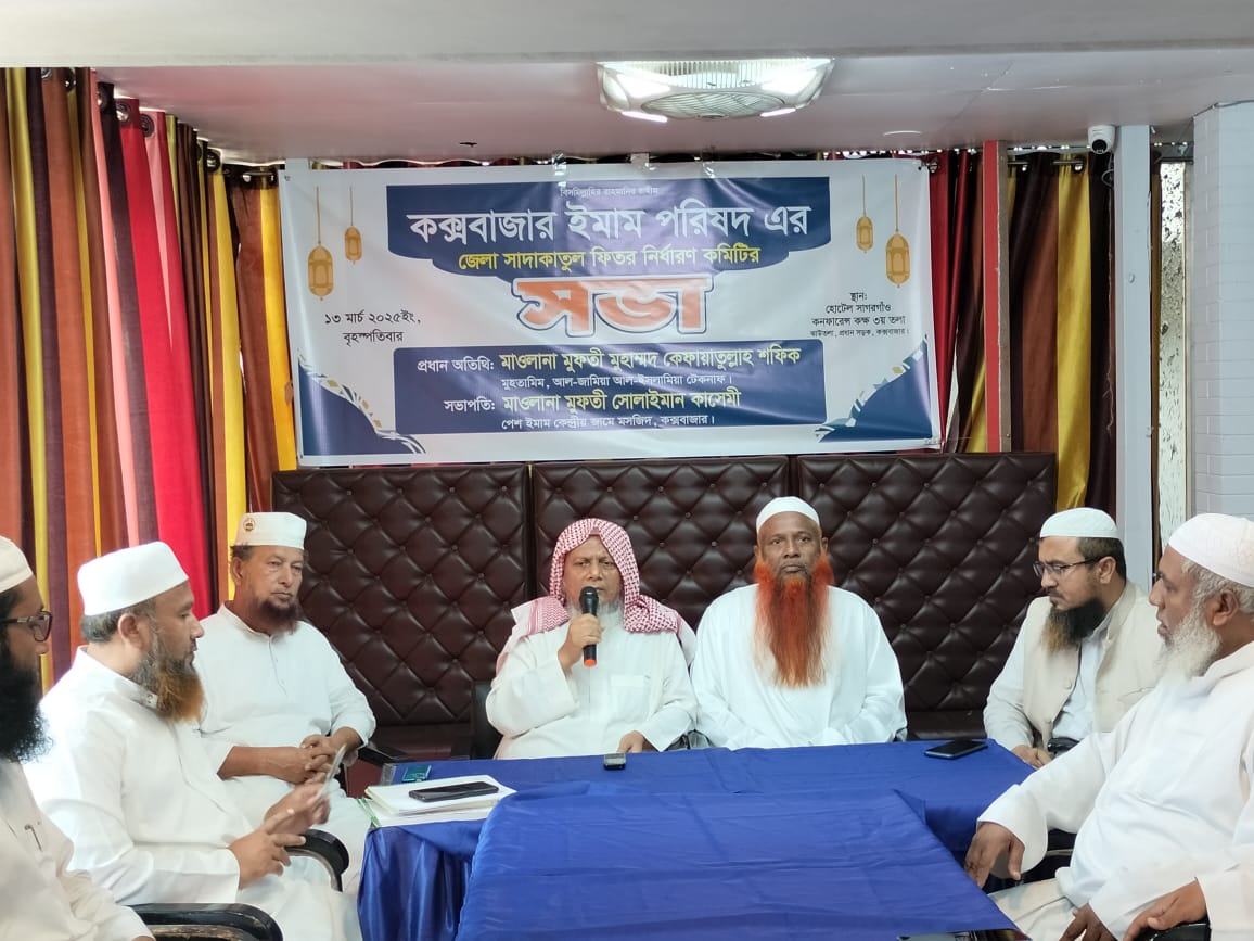সভায় সভাপতিত্ব করেন ককসবাজার জেলা সাদাকাতুল ফিতরা নির্ধারণ কমিটির সভাপতি ও ককসবাজার ইমাম পরিষদের সভাপতি ককসবাজার কেন্দ্রীয় জামে মসজিদের পেশ ইমাম মাওলানা মুফতি সোলাইমান কাসেমী।