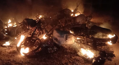 ঘটনাস্থলে পাঁচটি মোটরসাইকেল পুড়িয়ে দেওয়া হয়েছে। ঘটনার পর থেকে থমথমে পরিস্থিতি বিরাজ করছে ।