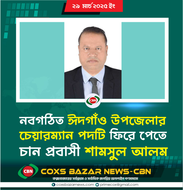 ২০২৪ সালে অনুষ্ঠিত কক্সবাজারের নবগঠিত উপজেলা ঈদগাঁওয়ের প্রথম বারেরমত অনুষ্ঠিত উপজেলা চেয়ারম্যান নির্বাচনের বিজয়ী ঘোষণা পেতে চান প্রবাসী শামসুল আলম। ইতোমধ্যে প্রবাসী শামশুল আলম তিনিসহ তাঁর শুভাকাঙ্ক্ষীদের পেইজবুক পেইজে নিজেকে বিজয়ী ঘোষণার জন্য নির্বাচন কমিশনের কাছে দাবি জানিয়েছেন। গত কয়েকদিন যাবৎ শামসুল আলম তাঁর ভেরিফায়েড ফেসবুক পেইজ ও ঈদগাঁও এলাকার কয়েক বাসিন্দার ওয়ালে এ দাবি জোরালোভাবে দেখা যাচ্ছে।