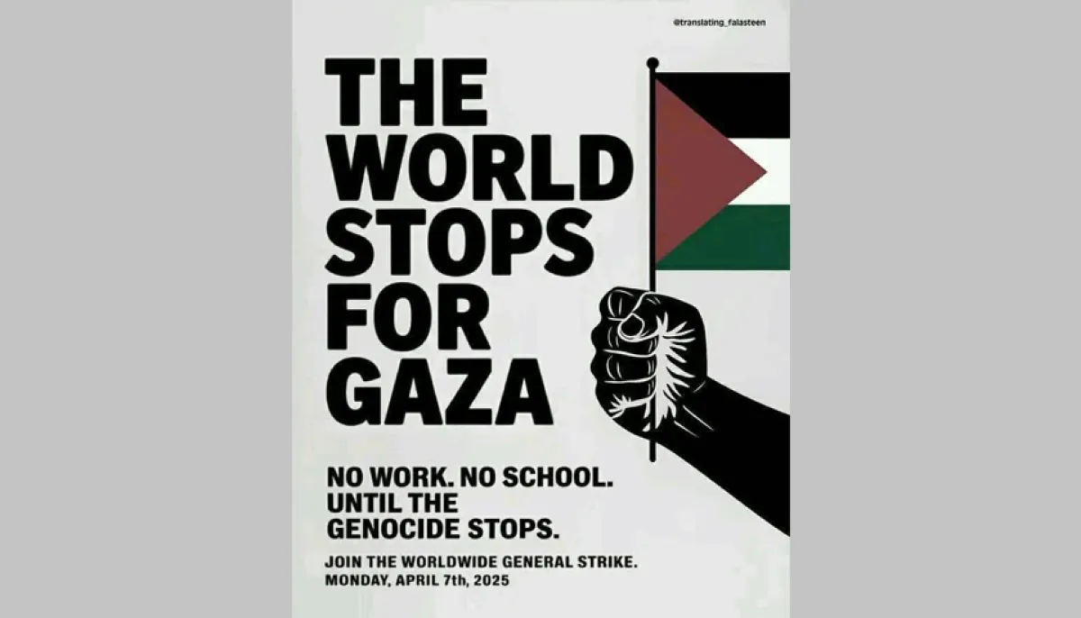 ইসরায়েলি আগ্রাসন ও গণহত্যার বিরুদ্ধে বিশ্বব্যাপী প্রতিবাদের অংশ হিসেবে আগামীকাল (সোমবার, ৭ এপ্রিল) সব ধরনের কার্যক্রম বন্ধ রাখার আহ্বান জানিয়েছে নিপীড়িত গাজাবাসী। আহ্বানে বলা হয়েছে, একযোগে বিশ্বজুড়ে শিক্ষা প্রতিষ্ঠান, সরকারি-বেসরকারি অফিস ও আদালত বন্ধ রেখে ইসরায়েলি দখলদারিত্বের বিরুদ্ধে অবস্থান নিতে হবে।