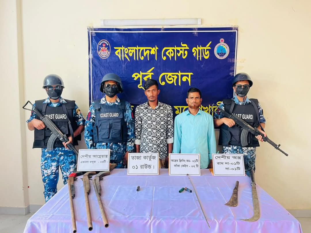 এ তথ্যের ভিত্তিতে কোস্ট গার্ড স্টেশন মহেশখালী ও পুলিশের যৌথ দল সোমবার মধ্যরাতে সেখানে অভিযান চালায়। অভিযানে দেশীয় তৈরি ৩টি আগ্নেয়াস্ত্র, একটি তাজা কার্তুজ, ২টি ফাঁকা খোসা, একটি অস্ত্র পরিষ্কারের রড এবং ২টি দেশীয় অস্ত্রসহ দুই ডাকাতকে আটক করা হয়।