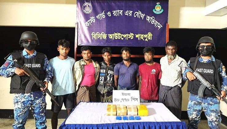 কক্সবাজারের টেকনাফে মাদকবিরোধী যৌথ অভিযান চালিয়েছে কোস্ট গার্ড ও র্যাব। অভিযানে ৪০ হাজার ৭৭০ পিস ইয়াবা উদ্ধার করা হয়েছে। একই সঙ্গে মাদক পাচারের অভিযোগে ছয় মিয়ানমার নাগরিককে আটক করা হয়েছে।