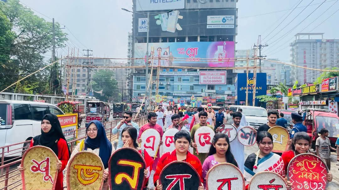 সকালে বিশ্ববিদ্যালয় ক্যাম্পাস থেকে বের হয় আনন্দ শোভাযাত্রা।