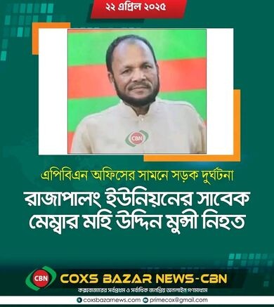 উখিয়ায় সড়ক দুর্ঘটনায় রাজাপালং ইউনিয়নের ২নং ওয়ার্ডের সাবেক ইউপি সদস্য মহিউদ্দিন মুন্সি (ইন্না লিল্লাহি ওয়া ইন্না ইলাইহি রাজিউন) ইন্তেকাল করেছেন।