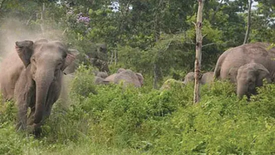 ভোরে দুটি বন্য হাতি ফসলি জমিতে ঢুকে পড়লে স্থানীয়রা ধাওয়া দেয়। এক পর্যায়ে হাতিগুলো নির্মাণশ্রমিকদের থাকার ঘরে আক্রমণ করে। এতে দুজন গুরুতর আহত হন।