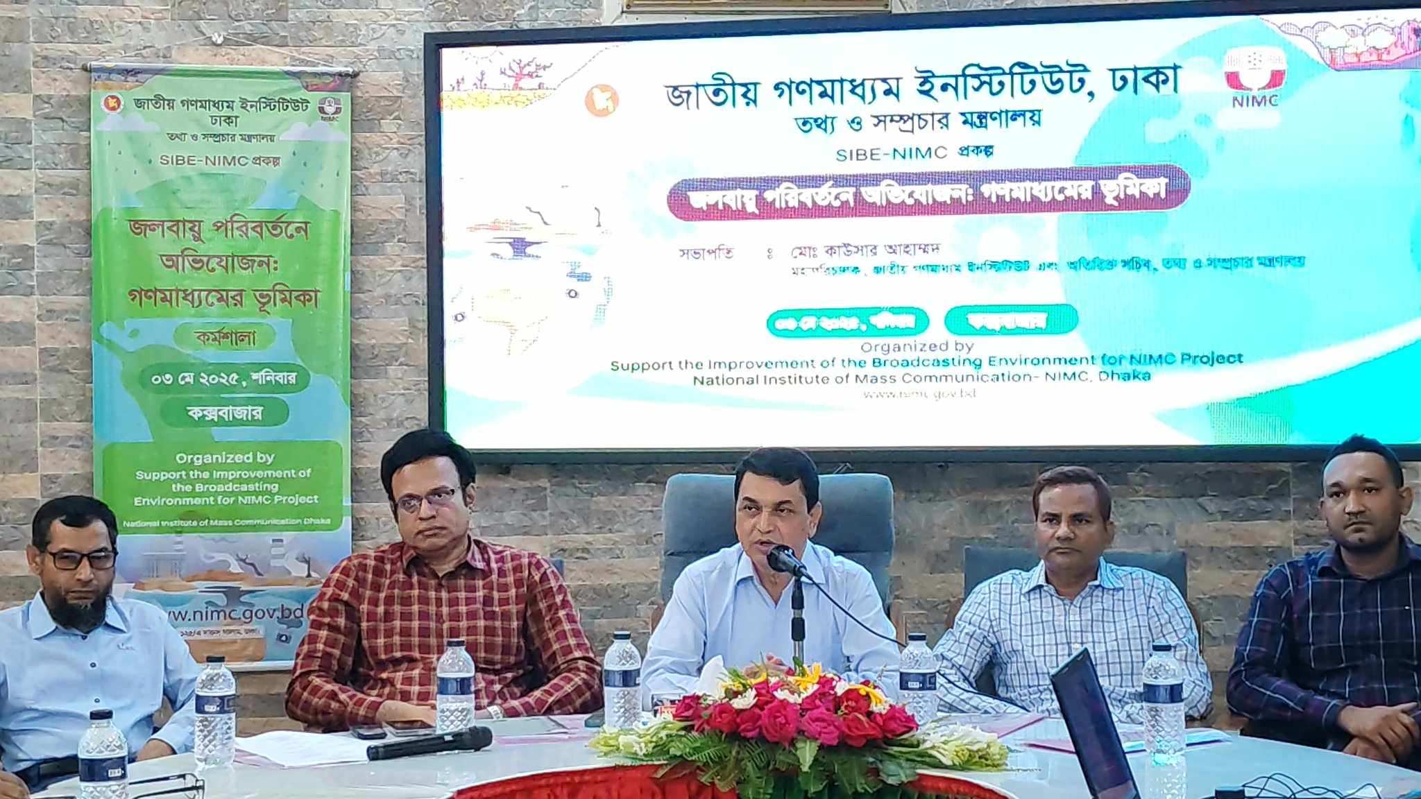 জাতীয় গণমাধ্যম ইনস্টিটিউটের উপ-পরিচালক মোহাম্মদ আবু সাদেকের সঞ্চালনায় কর্মশালায় “জলবায়ু পরিবর্তনে অভিযোজন: গণমাধ্যমের ভূমিকা” শীর্ষক বিষয়ভিত্তিক আলোচনা করেন,