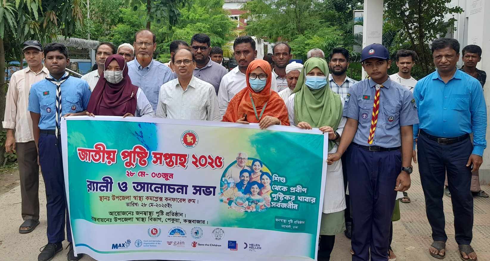 “শিশু থেকে প্রবীণ, পুষ্টিকর খাবার সর্বজনীন”-এই প্রতিপাদ্যকে সামনে রেখে কক্সবাজারের পেকুয়া উপজেলায় জাতীয় পুষ্টি সপ্তাহ-২০২৫ উপলক্ষে র্যালি ও আলোচনা সভার আয়োজন করা হয়েছে।