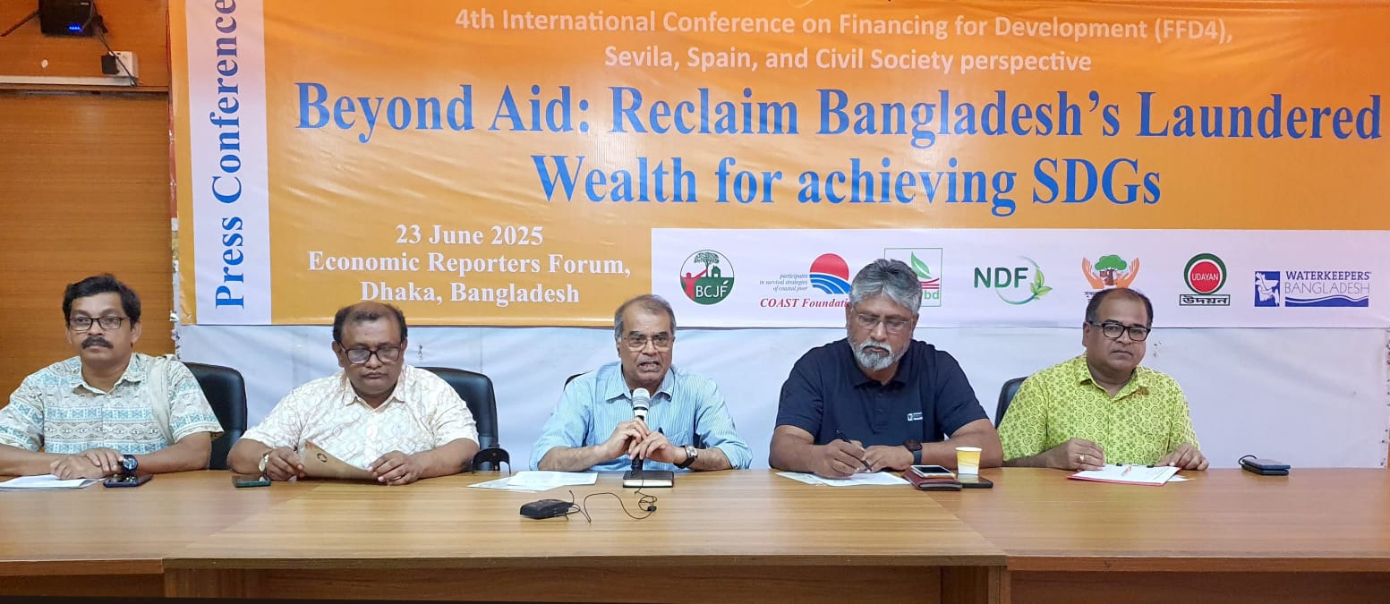 কোস্ট ফাউন্ডেশন, ইক্যুইটিবিডি, বিসিজেএফ, এনডিএফ, সুন্দরবন ও উপকূল সুরক্ষা আন্দোলন, উদয়ন এবং ওয়াটার কিপারর্স বাংলাদেশ যৌথভাবে এফএফডি-৪ আন্তর্জাতিক সম্মেলনের প্রাক্কালে আজ রাজধানী ঢাকায় এই সংবাদ সম্মেলনের আয়োজন করে। এফএফডি-৪ স্পেনের সেভিলা শহরে আগামী ৩০ জুন থেকে ৩ জুলাই ২০২৫ পর্যন্ত অনুষ্ঠিত হবে। কোস্ট ফাউন্ডেশনের মোঃ ইকবাল উদ্দিন সংবাদ সম্মেলনে মূল দাবিগুলো তুলে ধরেন এবং ইক্যুইটিবিডির প্রধান সমন্বয়কারী রেজাউল করিম চৌধুরী এতে সঞ্চালনা করেন।