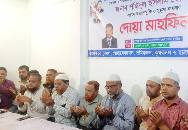 তার দ্রুত রোগমুক্তি ও সুস্থতা কামনায় চকরিয়া পৌর বিএনপির অঙ্গ ও সহযোগী সংগঠনের উদ্যোগে দোয়া ও মিলাদ মাহফিল অনুষ্ঠিত হয়েছে।