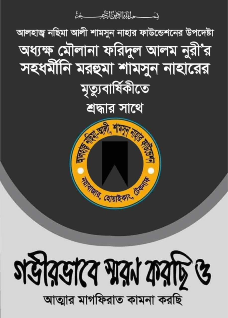 জমিরিয়া দারুল কোরআন আলিম মাদ্রাসার অধ্যক্ষ মৌলানা ফরিদুল আলম নুরী’ র সহধর্মিণী মহিয়সী নারী মরহুমা শামসুন নাহার এর ৫ম মৃত্যুবার্ষিকী আজ।