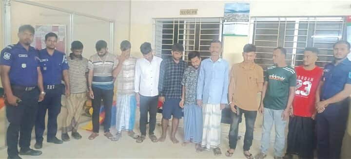 আটক ব্যক্তিরা হলেন: মো. সেলিম (৪৫), মো. রুবেল (২১), মো. রাজিব (২৩), মো. সাকিব (২১), নেজাম উদ্দিন (৩২), মো. বাদশা (৩২), মো. আকাশ (২৫), জসিম উদ্দিন (৪২), কামাল উদ্দিন (৬০) ও মো. বাবুল (২১)।