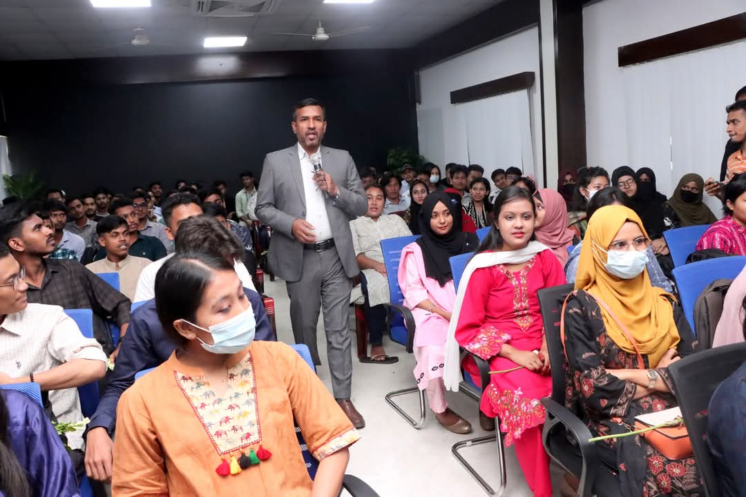 ওরিয়েন্টশন প্রোগ্রামের শুরুতেই বিশ্ববিদ্যালয়ের কম্পিউটার সায়েন্স এন্ড ইঞ্জিনিয়ারিং বিভাগের চেয়ারম্যান সহকারী অধ্যাপক জনাব আহমেদ ইমতিয়াজ, ম্যানেজমেন্ট বিভাগের চেয়ারম্যান সহযোগী অধ্যাপক জনাব মোহনা বিশ্বাস, ফরেস্ট্রি এন্ড এনভায়রনমেন্টাল সায়েন্স বিভাগের চেয়ারম্যান সহকারী অধ্যাপক ড. নিখিল চাকমা, ট্যুরিজম হসপিটালিটি ম্যানেজমেন্ট বিভাগের চেয়ারম্যান সহকারী অধ্যাপক মোসা হাবিবা এবং ফিশারিজ এন্ড মেরিন রির্সোসেস টেকনোলজি বিভাগের সহযোগী অধ্যাপক ড. মোঃ মতিউর রহমান চৌধুরীসহ সকল বিভাগের চেয়ারম্যানগণ ফুল দিয়ে নবীন শিক্ষার্থীদের বরণ করে নেন। এরপর নবীন শিক্ষার্থীদের পরিচয় পর্ব অনুষ্ঠিত হয়। অনুষ্ঠানে বিশেষ অতিথিবৃন্দ স্বাগত বক্তব্য প্রদান করেন। তাঁরা চর্তুথ শিল্প বিপ্লবের টুলসগুলো আয়ত্ত করে নিজেদের বিশ্বমানের মেধা শক্তিতে রুপান্তরিত হওয়ার আহবান জানান। শুধুমাত্র বিশ্ববিদ্যালয়ের কারিকুলামের উপর নির্ভর না করে বিশ্বমানের বিশ্ববিদ্যালয়গুলোতে উচ্চতর শিক্ষা ও গবেষণার জন্য নিজেকে প্রস্তুত করতে বিশ্ববিদ্যালয় জীবনের প্রথম থেকে জিআরই’র (GRE) প্রস্তুতির উপর গুরুত্ব প্রদান করেন। তাঁরা বলেন, জীবনের মাস্টার প্ল্যান তৈরির এটাই উপযুক্ত সময়।