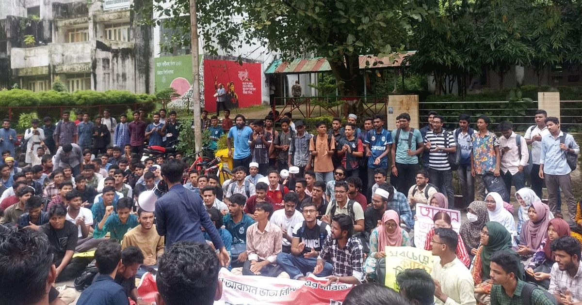 রবিবার (১৭ আগস্ট) দুপুর দেড়টায় বিশ্ববিদ্যালয়ের প্রশাসনিক ভবনের সামনে অবস্থান নিয়ে বিক্ষোভ শুরু করেন শিক্ষার্থীরা।