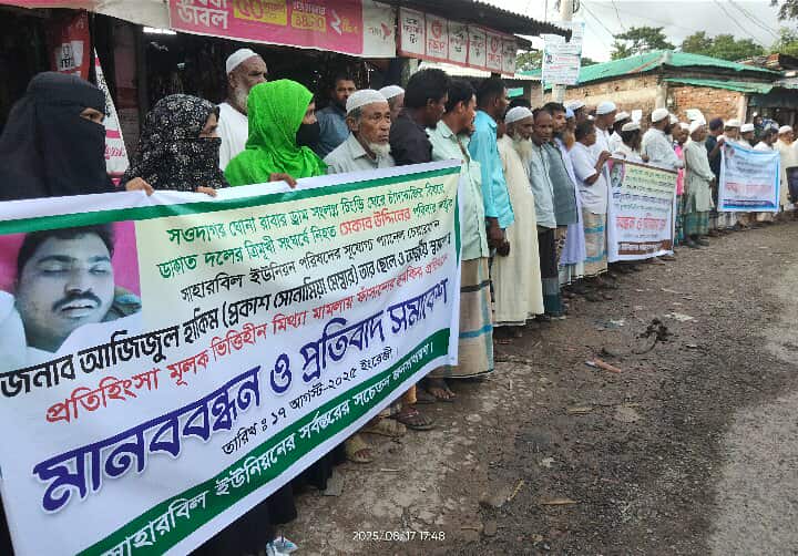 রোববার (১৭ আগস্ট) বিকেলে সাহারবিল ইউনিয়নের রামপুর স্টেশন এলাকায় এ মানববন্ধন অনুষ্ঠিত হয়। এতে বিপুল সংখ্যক নারী-পুরুষের পাশাপাশি ইউপির প্যানেল চেয়ারম্যান আজিজুল হাকিম সোনা মিয়া ও তাঁর পরিবার উপস্থিত ছিলেন।