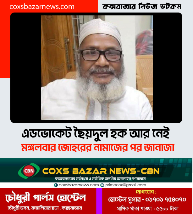 কক্সবাজারের প্রবীণ আয়কর আইনজীবী অ্যাডভোকেট ছৈয়দুল হক আর নেই। সোমবার (১৮ আগস্ট) রাত ৯ টা ৪০ মিনিটের দিকে চট্টগ্রাম শহরের একটি প্রাইভেট হাসপাতালে চিকিৎসাধীন অবস্থায় তিনি ইন্তেকাল করেন (ইন্নালিল্লাহি–রাজেউন)। মরহুমের নিকটাত্মীয় মুহাম্মদ ফেরদাউস এ তথ্য জানিয়েছেন।