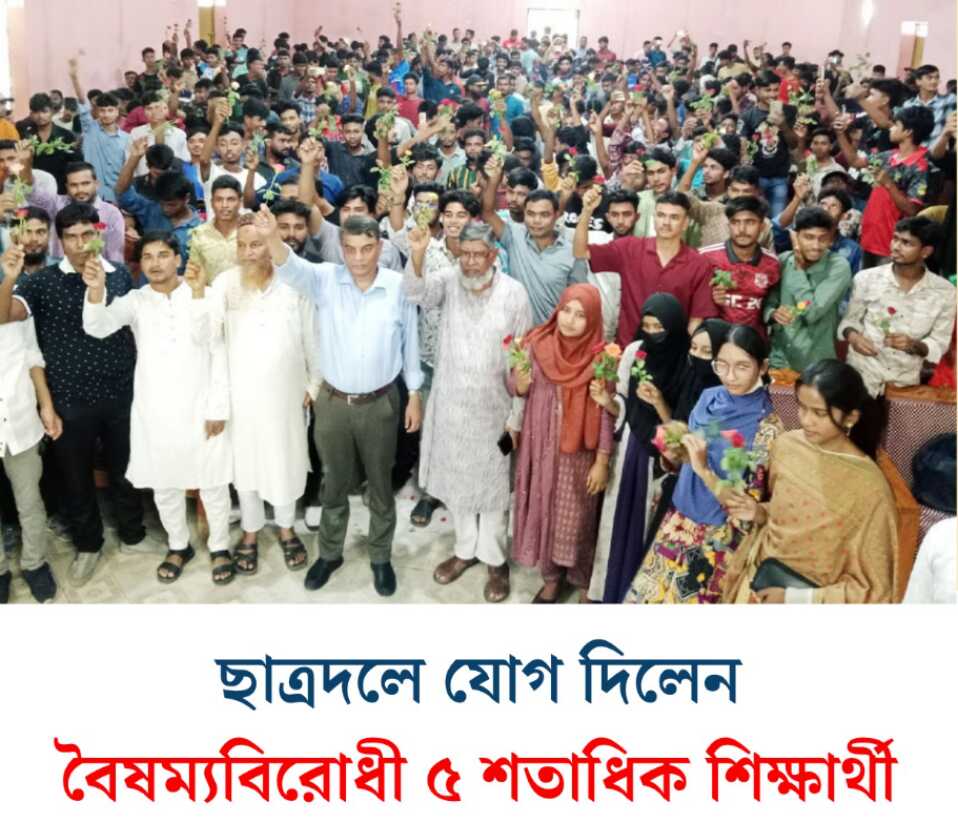 লালমনিরহাটের হাতীবান্ধা উপজেলায় বৈষম্যবিরোধী ছাত্র আন্দোলনে অংশ নেওয়া ৫ শতাধিক সাধারণ শিক্ষার্থী সোমবার (৬ অক্টোবর) দুপুরে উপজেলা অডিটরিয়াম হল রুমে আনুষ্ঠানিকভাবে জাতীয়তাবাদী ছাত্রদলে যোগদান করেছেন।