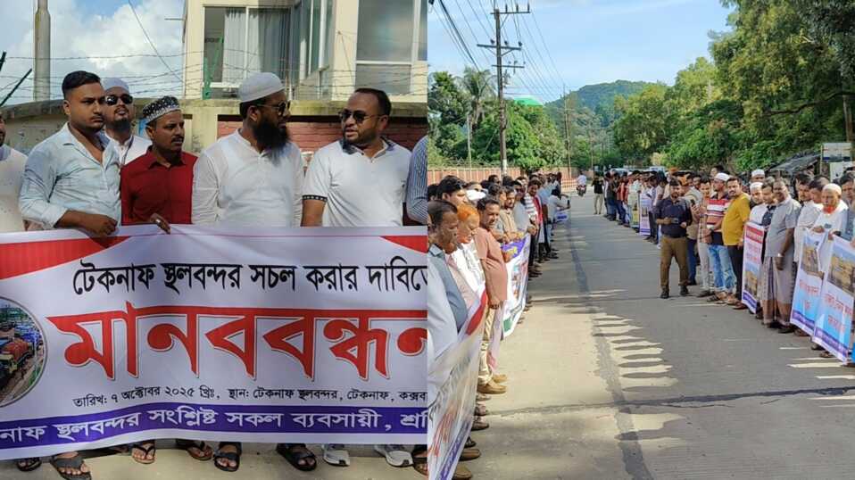 মানববন্ধনে অংশগ্রহণকারীরা বলেন, “আমাদের একটাই দাবি—টেকনাফ স্থলবন্দর অবিলম্বে সচল করতে হবে।”
