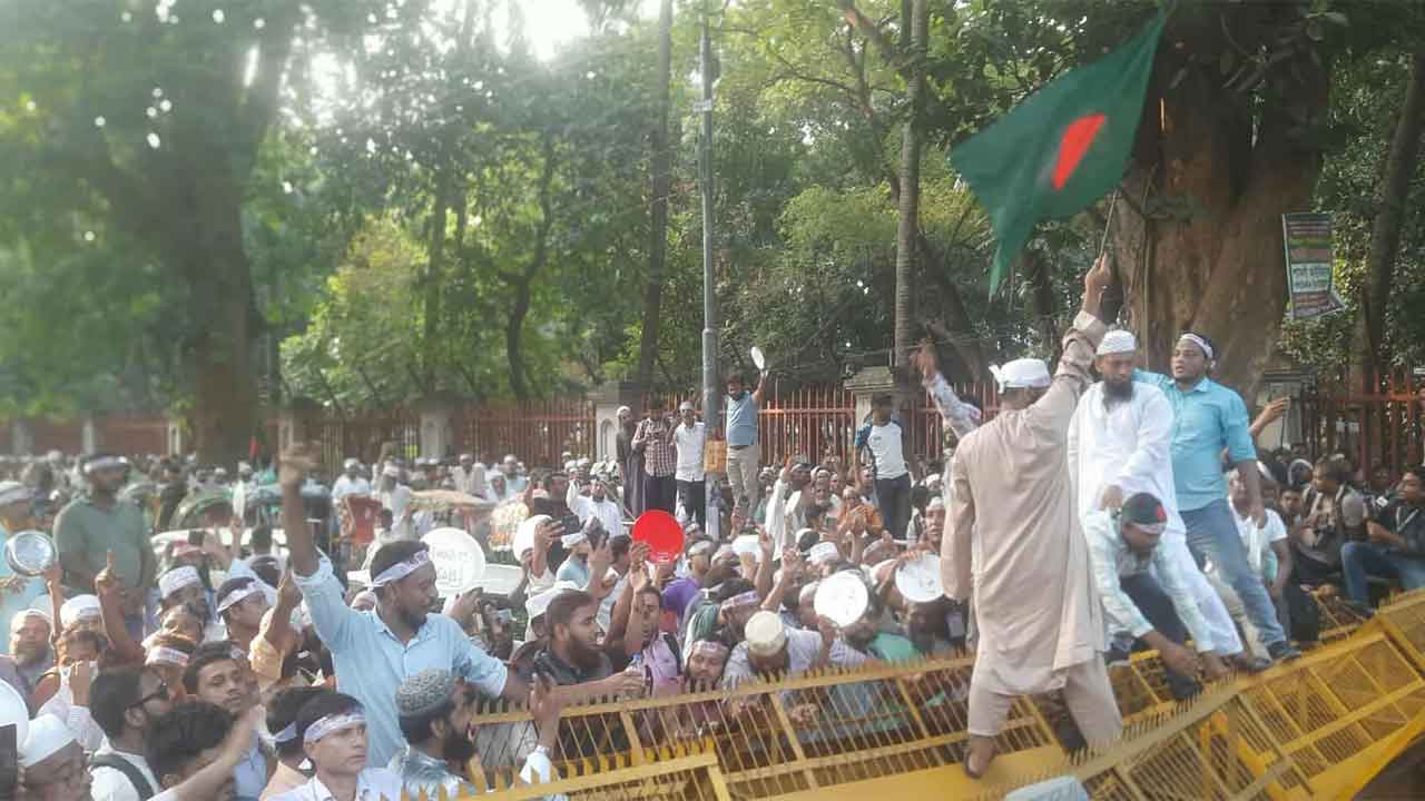 এর আগে বিকেল ৩টা ২০ মিনিটে শহীদ মিনার প্রাঙ্গণ থেকে খালি থালা হাতে মিছিল শুরু করেন শিক্ষকরা। পরে মাজার রোডে গিয়ে তাদের অগ্রযাত্রা বাধাগ্রস্ত হয়।