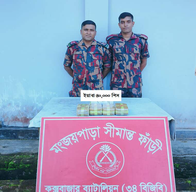 কক্সবাজার বর্ডার গার্ড বাংলাদেশ (বিজিবি) এর ৩৪ ব্যাটালিয়নের বিশেষ মাদকবিরোধী অভিযানে ৪০ হাজার পিস বার্মিজ ইয়াবা ট্যাবলেট উদ্ধার করা হয়েছে। উদ্ধারকৃত ইয়াবার আনুমানিক বাজারমূল্য এক কোটি বিশ লাখ টাকা।