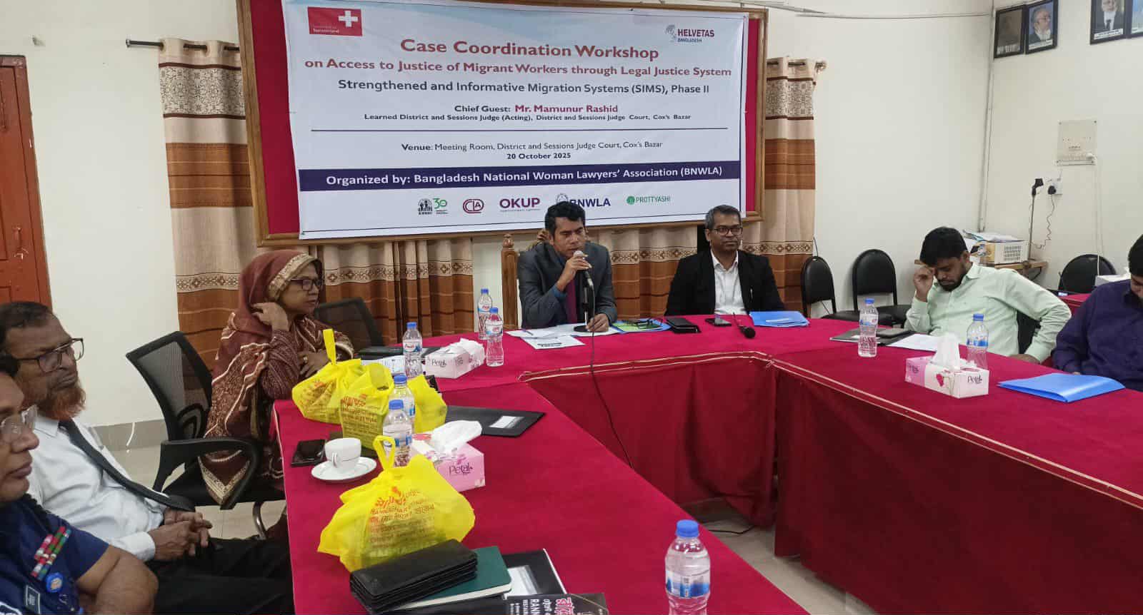 গত ২০ অক্টোবর বাংলাদেশ জাতীয় মহিলা আইনজীবী সমিতি (BNWLA) এর উদ্যোগে কক্সবাজার জেলা জজ আদালত এর সম্মেলন কক্ষে আইনি প্রক্রিয়ায় অভিবাসী কর্মীদের ন্যায়বিচার নিশ্চিতকরণে আয়োজিত এক কর্মশালায় প্রধান অতিথির বক্তব্যে কক্সবাজারের জেলা ও দায়রা জজ (ভা:) মামুনুর রশিদ একথা বলেন। সুইজারল্যান্ড সরকারের অর্থায়ন ও হেলভেটাস বাংলাদেশ এর কারিগরি সহযোগীতায় সিম্স Strengthened and Informative Migration Systems (সিম্স প্রকল্প ২য় পর্যায়) ‘এক্সেস টু জাস্টিস’ কার্যক্রমের আওতায় অনুষ্ঠিত এ কর্মশালায় তিনি আরো বলেন, বিদেশ যাওয়ার ক্ষেত্রে প্রতারণা থেকে রক্ষায় কম্যুনিটি পর্যায়ে আরো সচেতনতা বৃদ্ধি করতে হবে। অবৈধ পন্থায় বিদেশ যাওয়াকে সর্বোচ্চ নিরুৎসাহিত করতে হবে। বৈধ অভিবাসীদের সুযোগ সুবিধা ও মর্যাদা বাড়তে হবে। ভারপ্রাপ্ত জেলা জজ সিম্স প্রকল্পের আওতায় চলমান মামলাগুলো গুরুত্বেও সাথে দেখার পরামর্শ দেন।