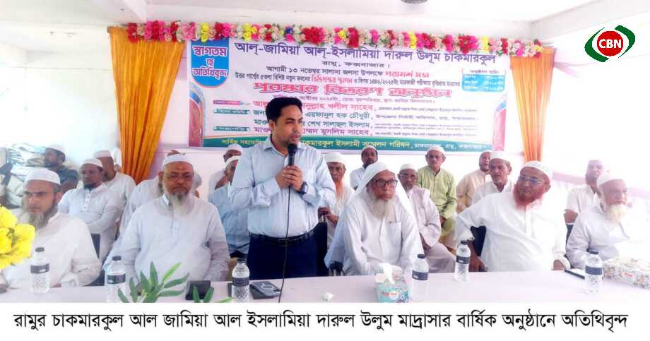বৃহষ্পতিবার, ২৩ অক্টোবর দুপুরে মাদ্রাসা মিলনায়তনে আয়োজিত এ অনুষ্ঠানে সভাপতিত্ব করেন- চাকমারকুল আল জামিয়া ইসলামিয়া দারুল উলুম মাদ্রাসার মুহতামিম মাওলানা সিরাজুল ইসলাম।