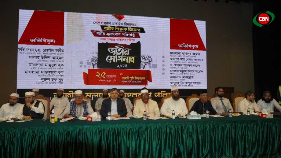 দেশের সকল প্রাথমিক বিদ্যালয়ে ধর্মীয় শিক্ষক নিয়োগ ও ধর্মীয় মূল্যবোধ পরিপন্থি সকল সিদ্ধান্ত বাতিলের দাবিতে রাজধানীর ওসমানি স্মৃতি মিলনায়তনে শনিবার (২৫ অক্টোবর) বিকেলে জাতীয় সেমিনার অনুষ্ঠিত হয়। অনুষ্ঠিত সেমিনারে বিভিন্ন মত ও পথের বিশিষ্ট ব্যক্তিবর্গ, সমাজ প্রতিনিধি, লেখক, শিক্ষাবিদ, গবেষকসহ দেশের বৃহত্তর সব রাজনৈতিক দলের নেতৃবৃন্দ বক্তব্য রাখেন। বক্তরা ‘দেশের প্রতিটি প্রাথমিক বিদ্যালয়ে যোগ্য ধর্মীয় শিক্ষক নিয়োগ’, ‘ধর্মীয় মূল্যবোধ পরিপন্থি কোনো বিষয় বা পাঠ্যবই দ্রুত পর্যালোচনা ও সংশোধন’, ‘নৈতিকতা ও মানবিক মূল্যবোধের ভিত্তিতে শিক্ষানীতি সংস্কারের রূপরেখা প্রণয়ন’, এবং ‘সকল ধরণের ধর্মীয় মূল্যবোধ পরিপন্থি সিদ্ধান্ত বাতিল’-করার দাবি জানান। বক্তাদের আলোচনা-পর্যালোচনা ও পরামর্শের ভিত্তিতে উত্থাপিত চারটি দাবিতে সকলে ঐকমত্য পোষণ করেন।