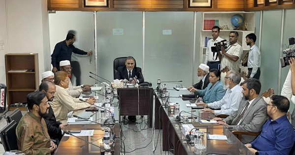 প্রধান নির্বাচন কমিশনার (সিইসি) এ এম এম নাসির উদ্দিনের সঙ্গে বৈঠকে রয়েছেন চার নির্বাচন কমিশনারসহ অন্যান্য কর্মকর্তারা।