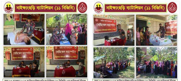 বান্দরবানের নাইক্ষ্যংছড়ি ব্যাটালিয়ন (১১ বিজিবি)-এর উদ্যোগে সীমান্ত এলাকার গরিব, অসহায় ও দুস্থ পাহাড়ি এবং বাঙালি জনগোষ্ঠীর জন্য বিনামূল্যে চিকিৎসাসেবা প্রদান করা হয়েছে।